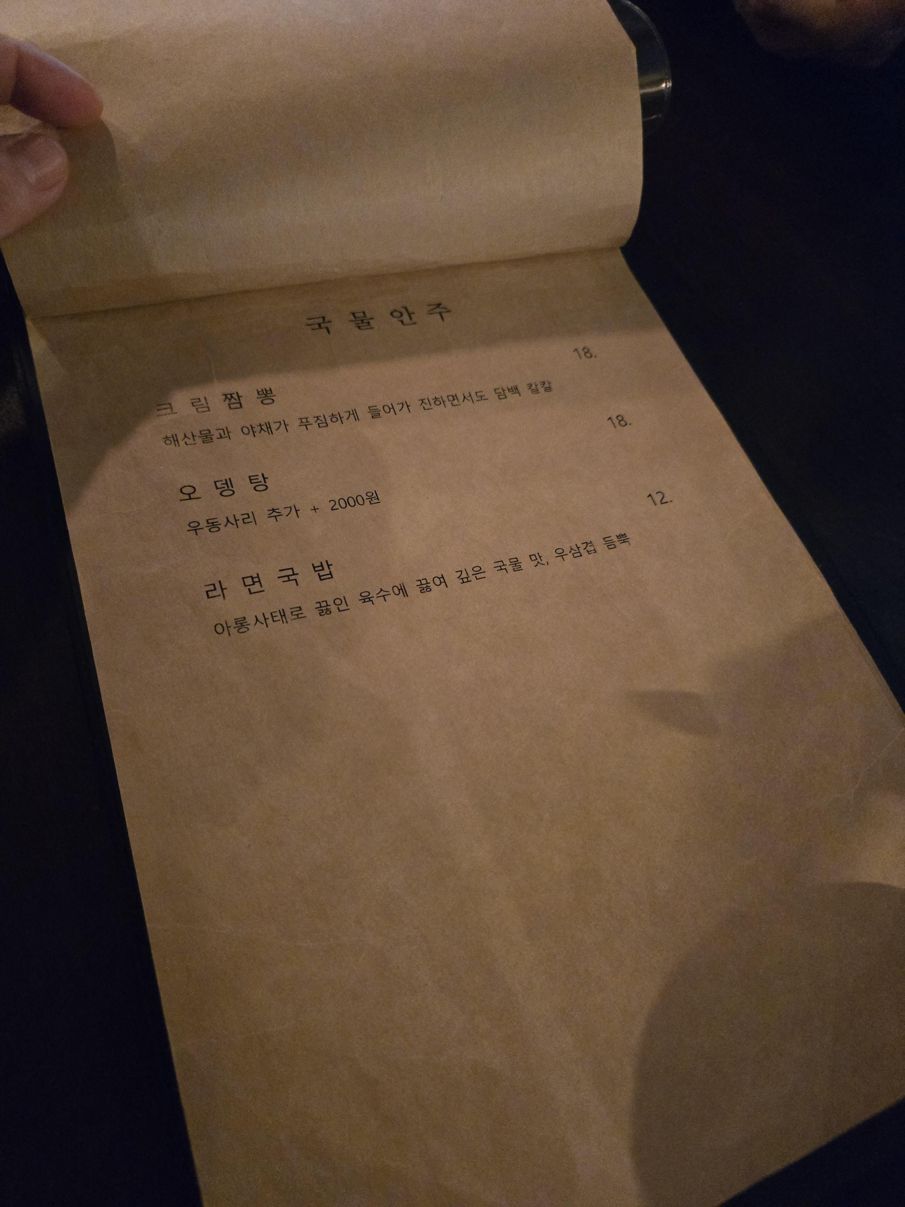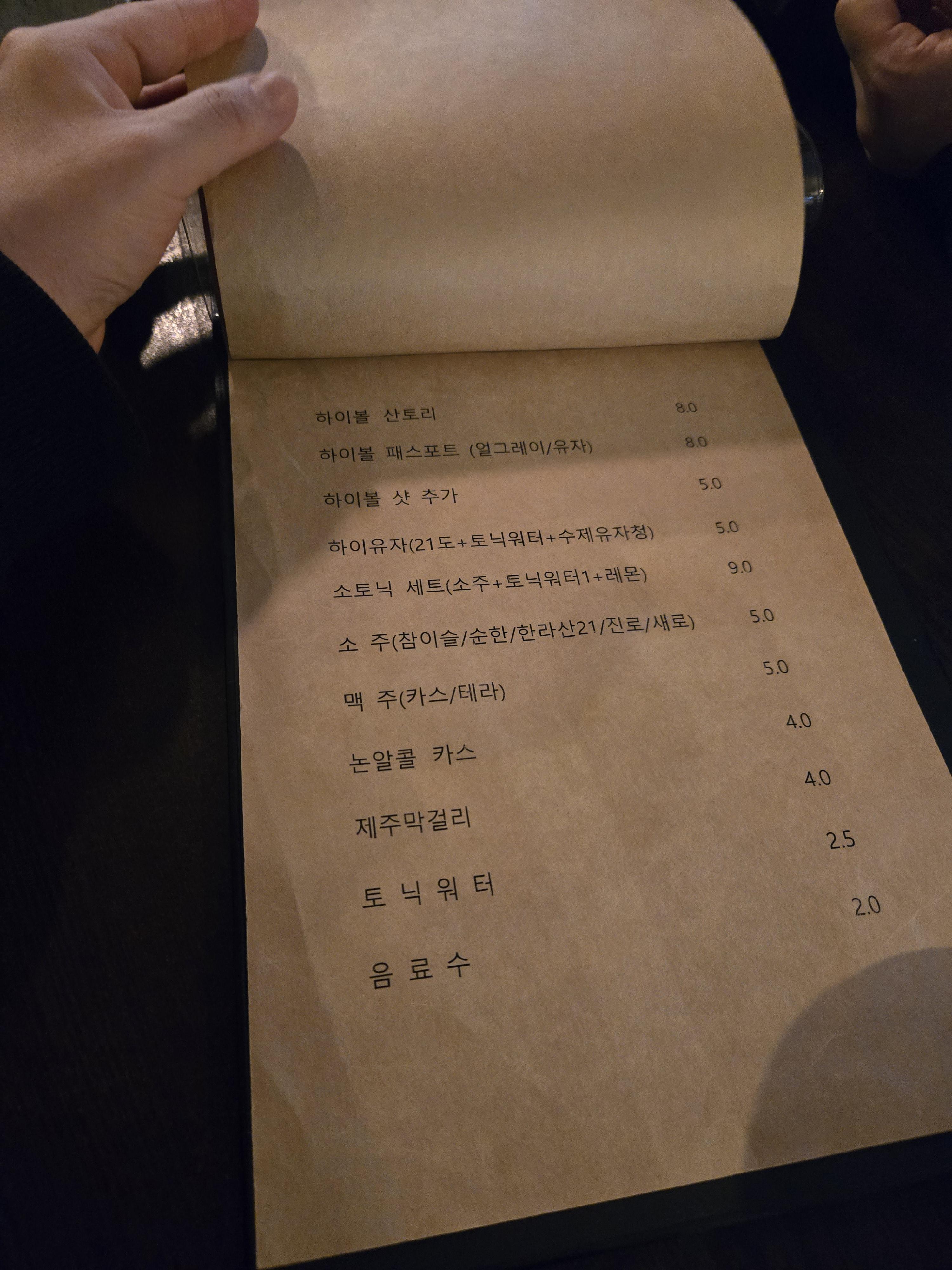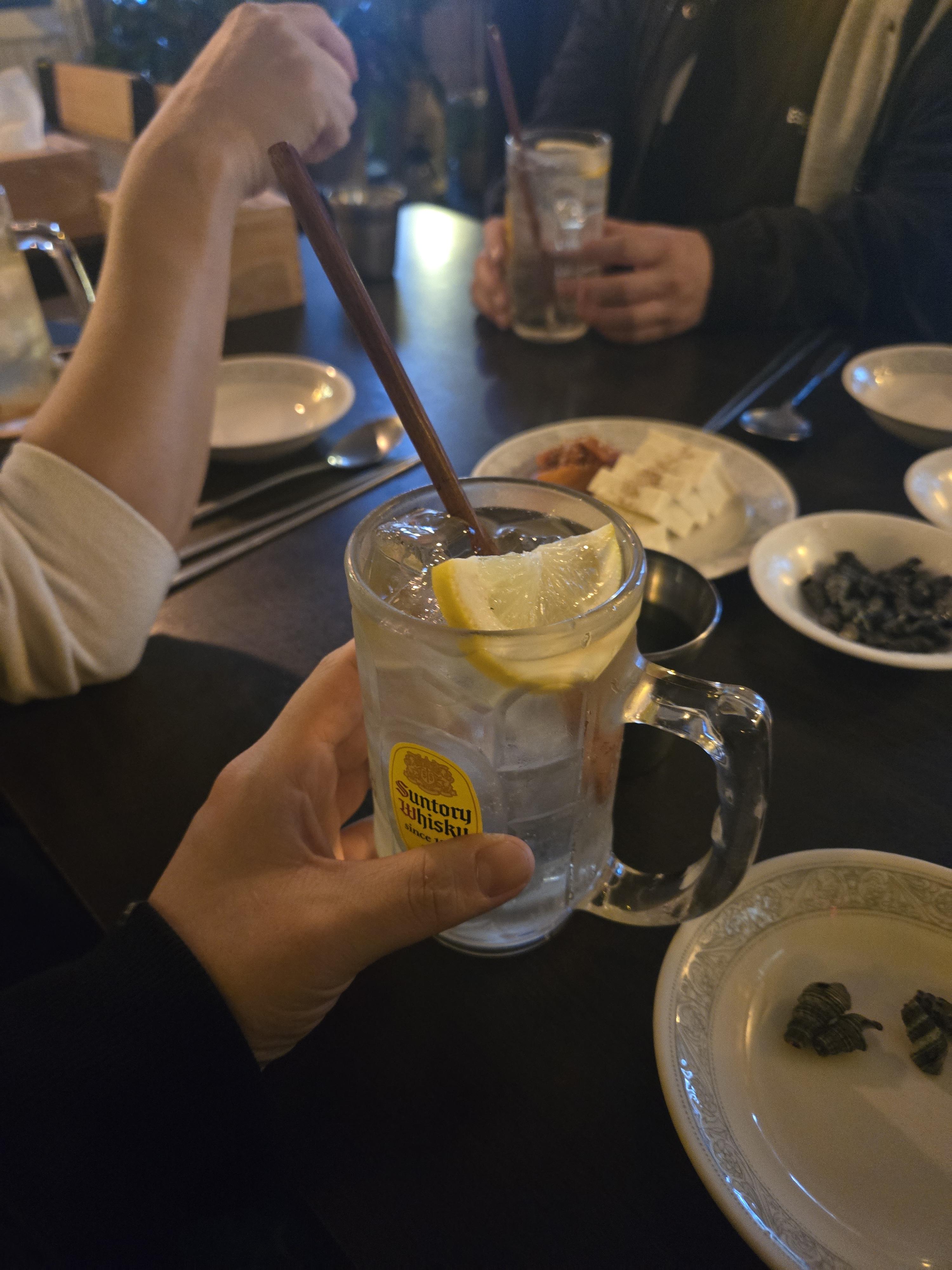 예전 방문에서는 시그니처 메뉴로 아롱사태 수육과 크림 짬뽕을 추천받아먹었었는데 이번엔 우리 일행 선배님. 연장자의 희망사항으로 육회와 부추우전을 주문해 봤다. 술은 하이볼 산토리/ 하이볼 유자 (부추우전 선택에는 내 사심이 개입되었다.) 처음 먹어보는 건 다 좋아. 난 새로운 게 좋으니까.
