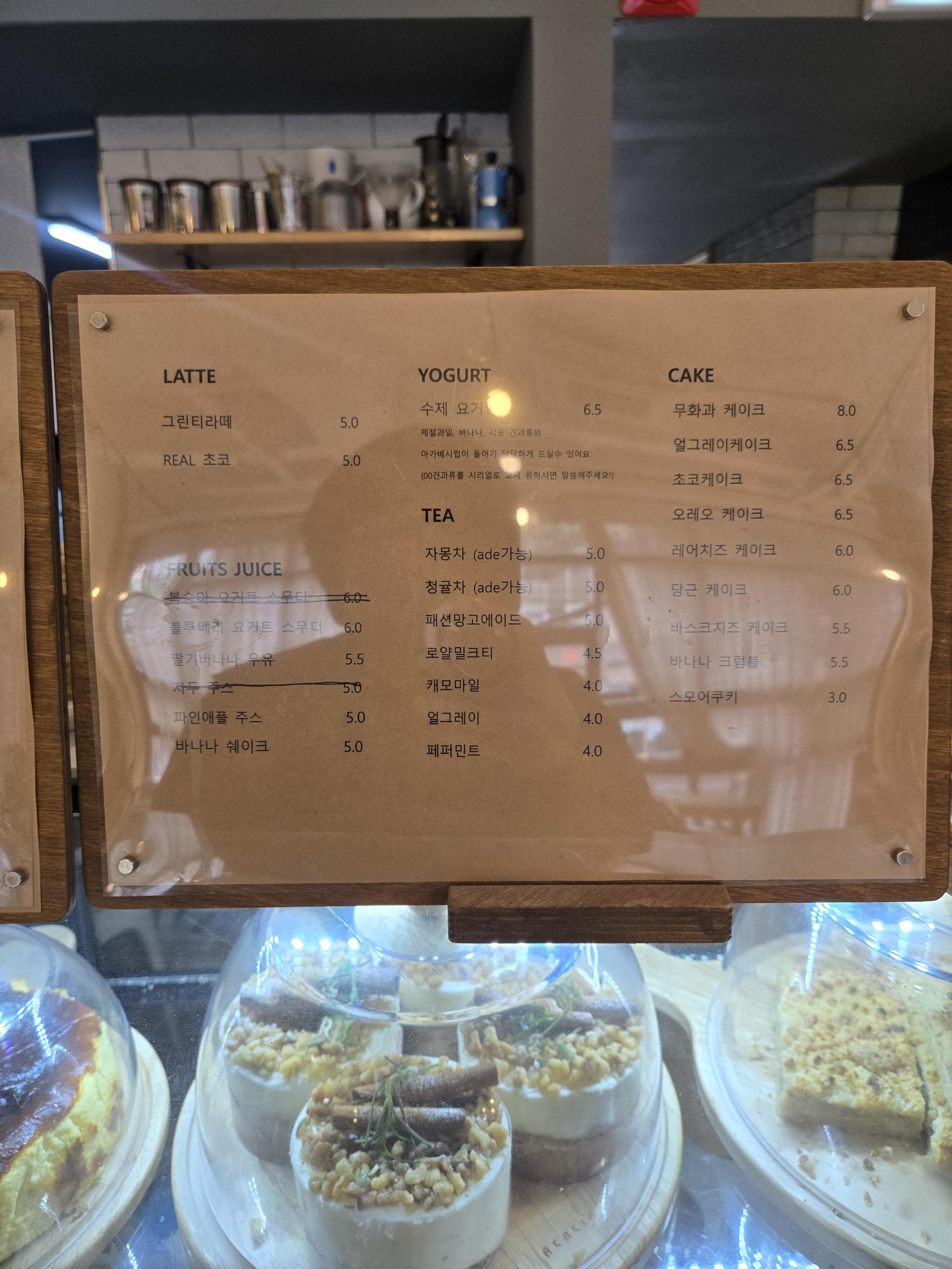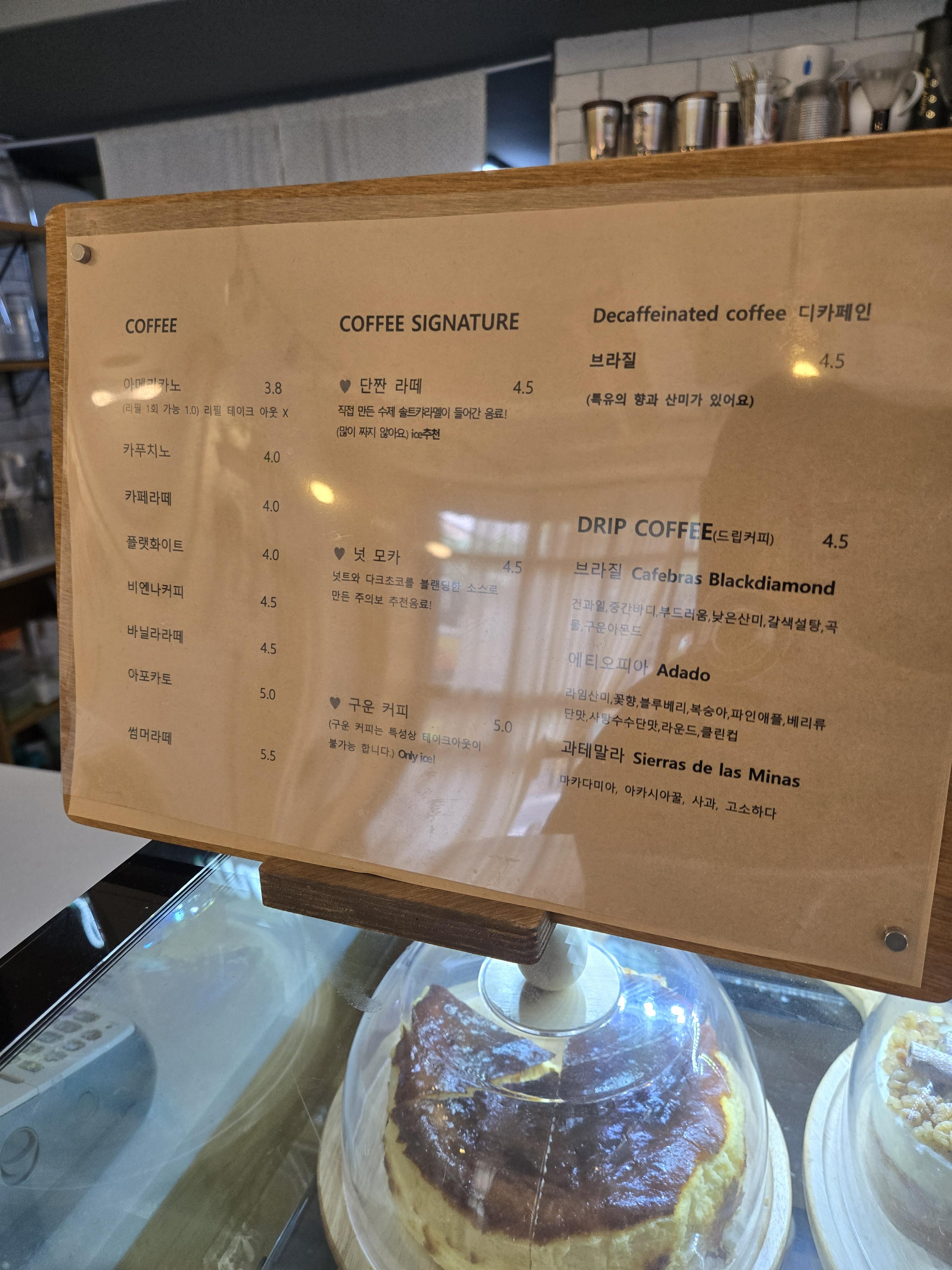 여름엔 수박주스가 일품. 메뉴판에 보이지 않는 것을 보니 상시판매가 아니라서 기재해 두지 않은 듯하다. 아이스 아메리카노 밖에 안 마시는 나도 이곳 수박주스엔 고민 따위 필요 없지. 수박주스! 여름에 수박주스가 판매 중이라면 꼭 드셔보시길. 수박주스 맛을 표현하자면 뭐랄까 수박맛이 농밀하다고 해야 맞나? 진짜 달달한 수박맛이 진득하게 느껴진다.