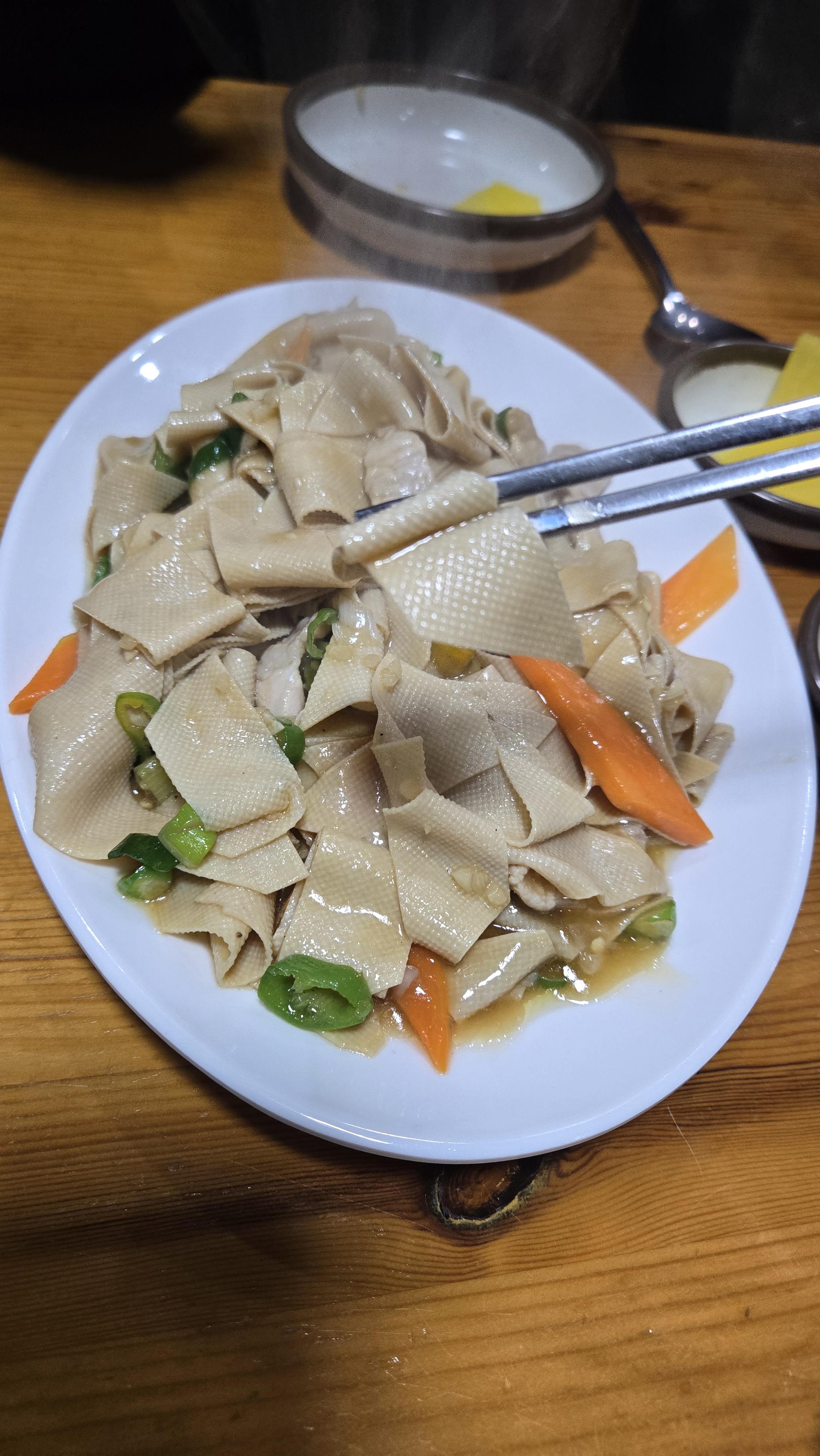건두부 무침을 주문한다는 게 볶음을 주문했지만, 저렴하면서 퀄리티 높은 요리다. 군데군데 고기도 보이고, 나 다이어트할 때 여기 와서 다이어트할까 봐. 이거 다 단백질이잖아? 다음엔 꼭 건두부 무침을 먹어보고 싶다.