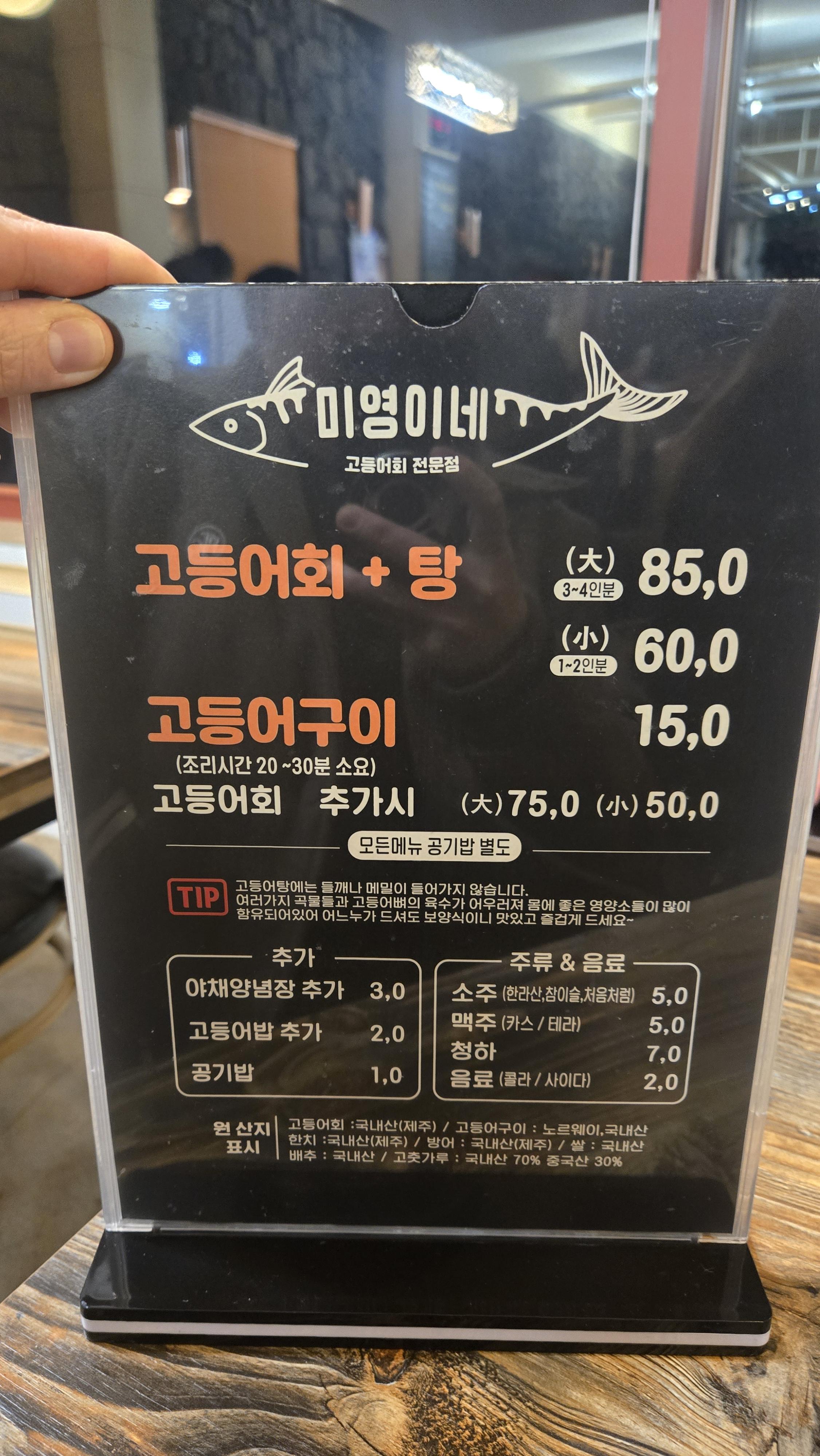미영이네를 모른다하니, 정말 외계인 취급을 하더군. 내가 아는 미영이네라곤 우리 고모 "☆미영 여사"밖에 모른다고. 그래서 여기 뭐 파는데? 고등어회 전문이란다. 눈이 동그래졌다. 굳이 집 근처 광양초 앞에 우리가 자주 가는 가게를 놔두고 30분이나 걸려서 여길 온다고? 여길 꼭 와봐야 한단다. 고등어회도 집집마다 다 다른 매력이 있다고. 먹어보면 다른 매력이 있을 거라면서. 도착하고 나니 한편으로 우르르 사람들이 나가고 대 인원이 다시 우르르 들어가고 있는 틈으로 대기를 하려고 하니 마침 우리가 들어갈 자리 하나가 남았다고 한다. 언뜻 하시는 말로는 대기에 포장손님도 포함되어 있었다고. 카운터에 포장 비닐이 여러 개 올려져 있는 걸 보니, 수긍이 됐다.