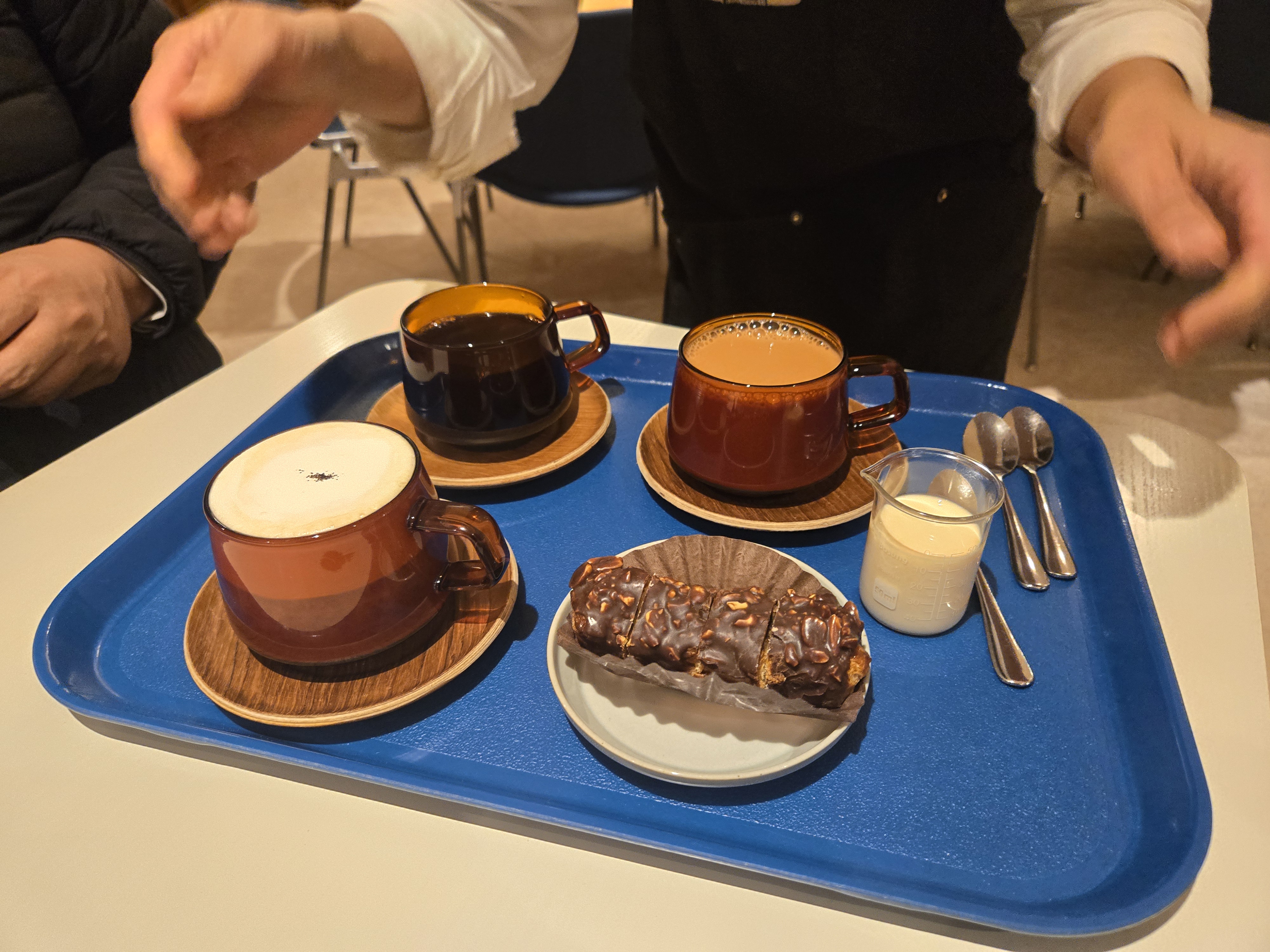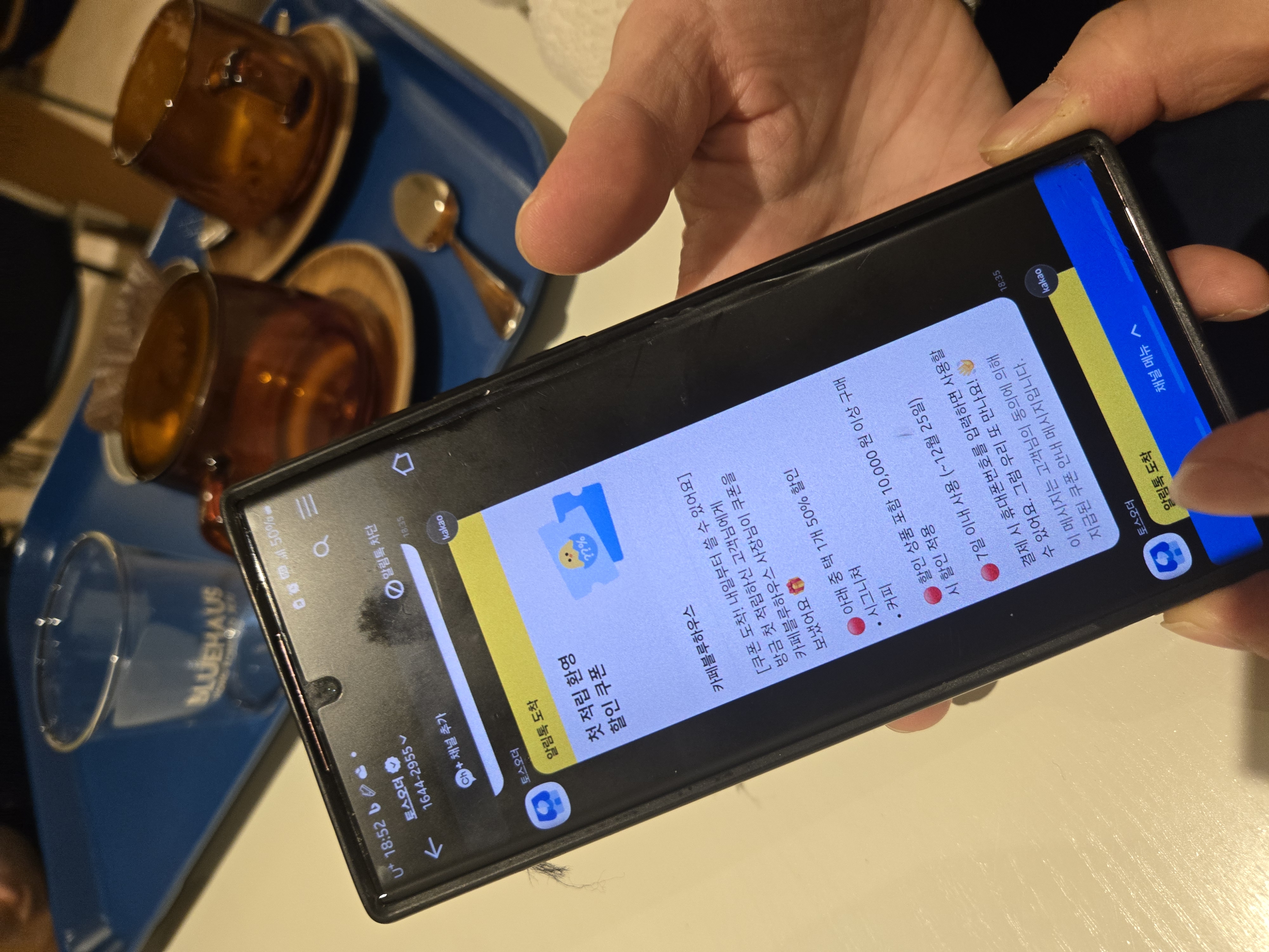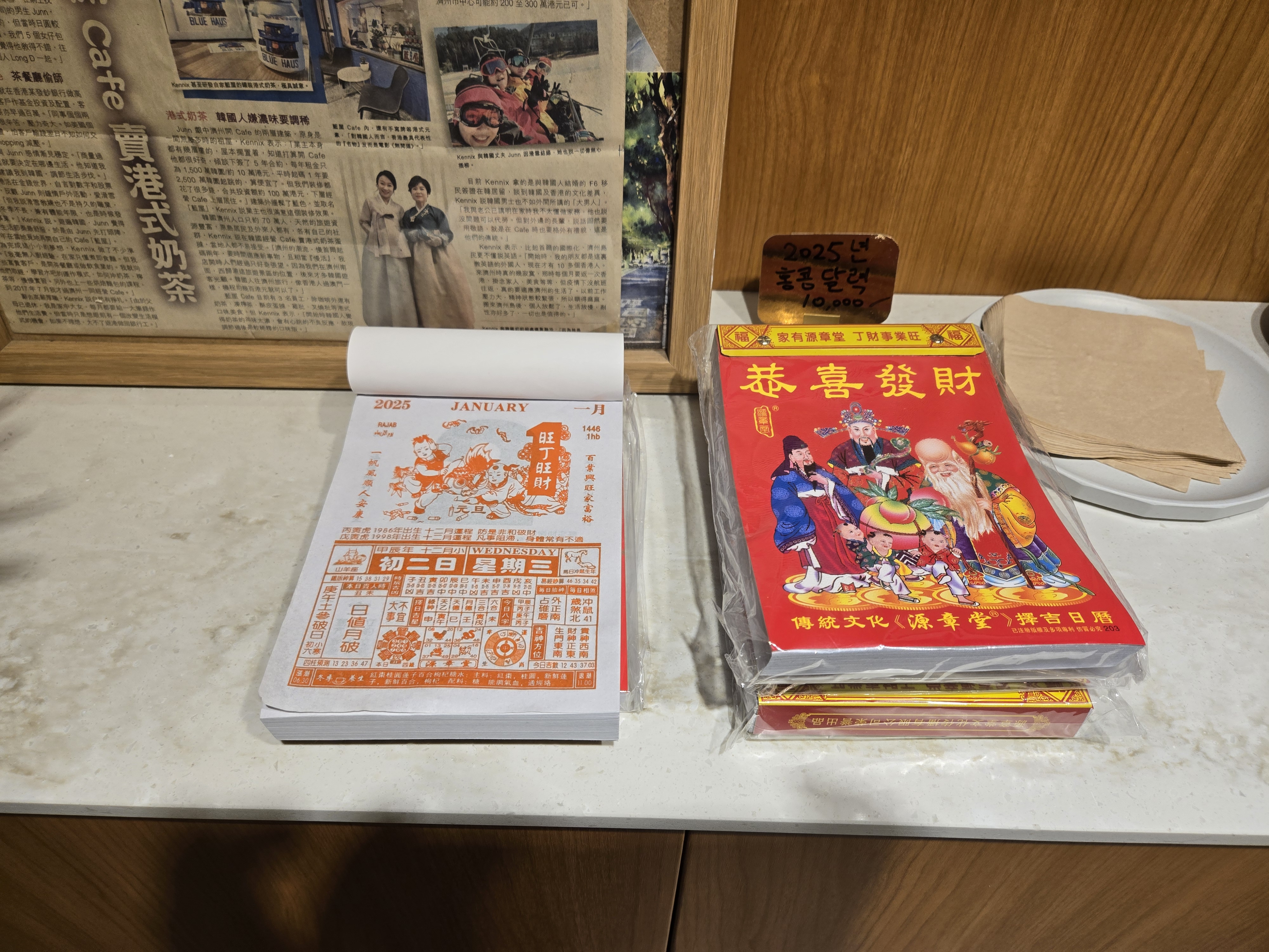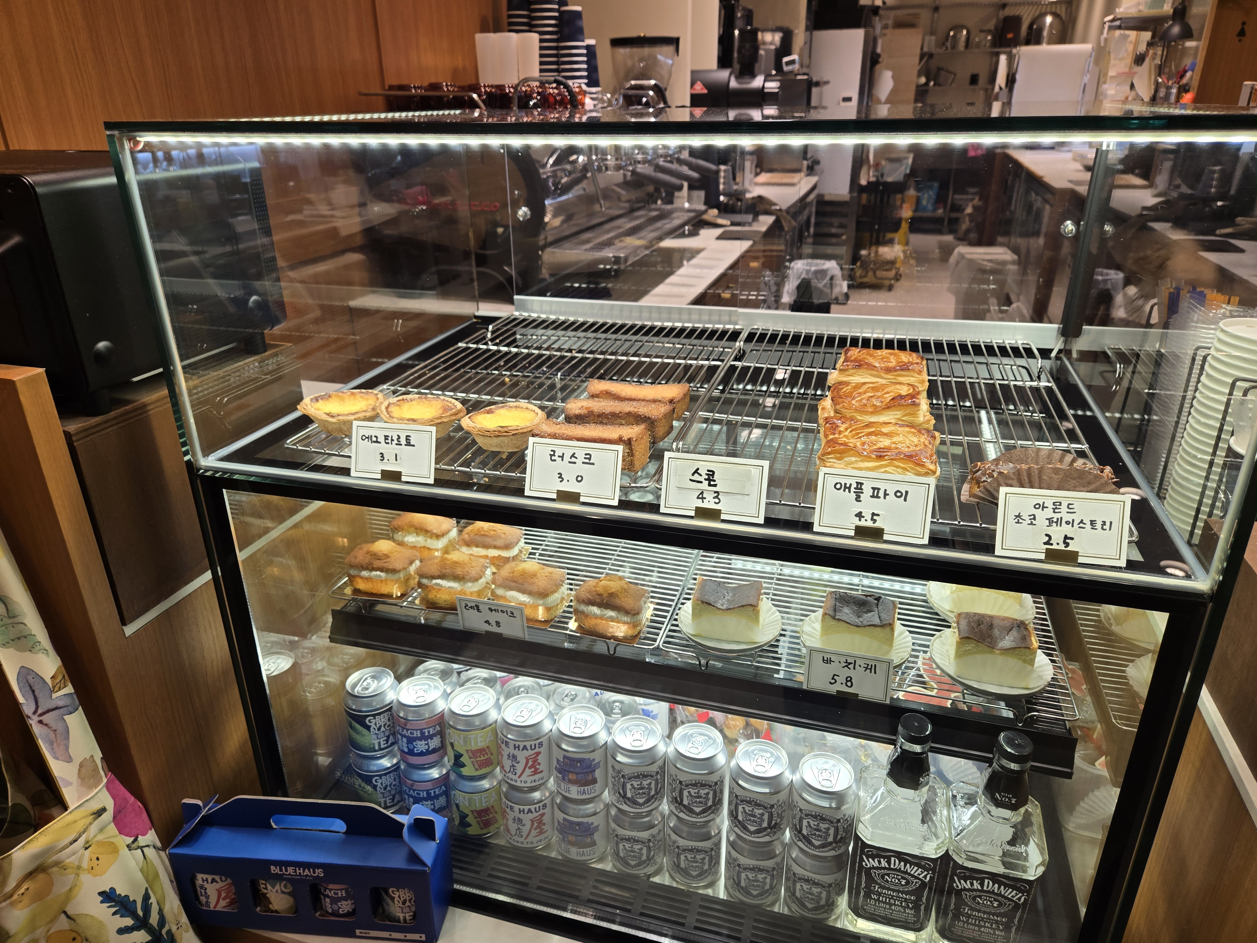 내부가 생각보다 넓고 좌석도 많아서 깜짝 놀랐다. 작은 카페인줄로만 알고 있었는데 규모가 그리 작지는 않다. 한편에는 올해 몇 장 남지 않은 일력이 걸려있고, 밑으로는 홍콩 미니 일력을 판매하는 것이 보인다. 작고 귀엽다. 인스타그램에 태그 하려고 하니 블루하우스로 검색이 잘 되지 않아. 용기 내서 "사장님, 인스타 주소 알려주세요. 태그 하려고 하는데 검색이 안 돼요. 저 사장님 릴스로 많이 봤어요. 신기해요" 사장님께서 내 말을 잠깐 곰곰이 생각하시더니, "아! 이해했어요. 이렇게 CAFEBLUEHAUS_OFFICIAL 이렇게 해야 해요. 감사해요" 그렇게 내가 원래 사장님을 팔로우하고 있던 사람이지만 사장님 카페 이름을 못 찾아서 태그를 못하는 상황을 적나라하게 보여드리고 우리는 기분 좋게 웃으며 헤어졌다. 연예인 만난 것 같은 기분에 오늘 하루는 성공이었다.