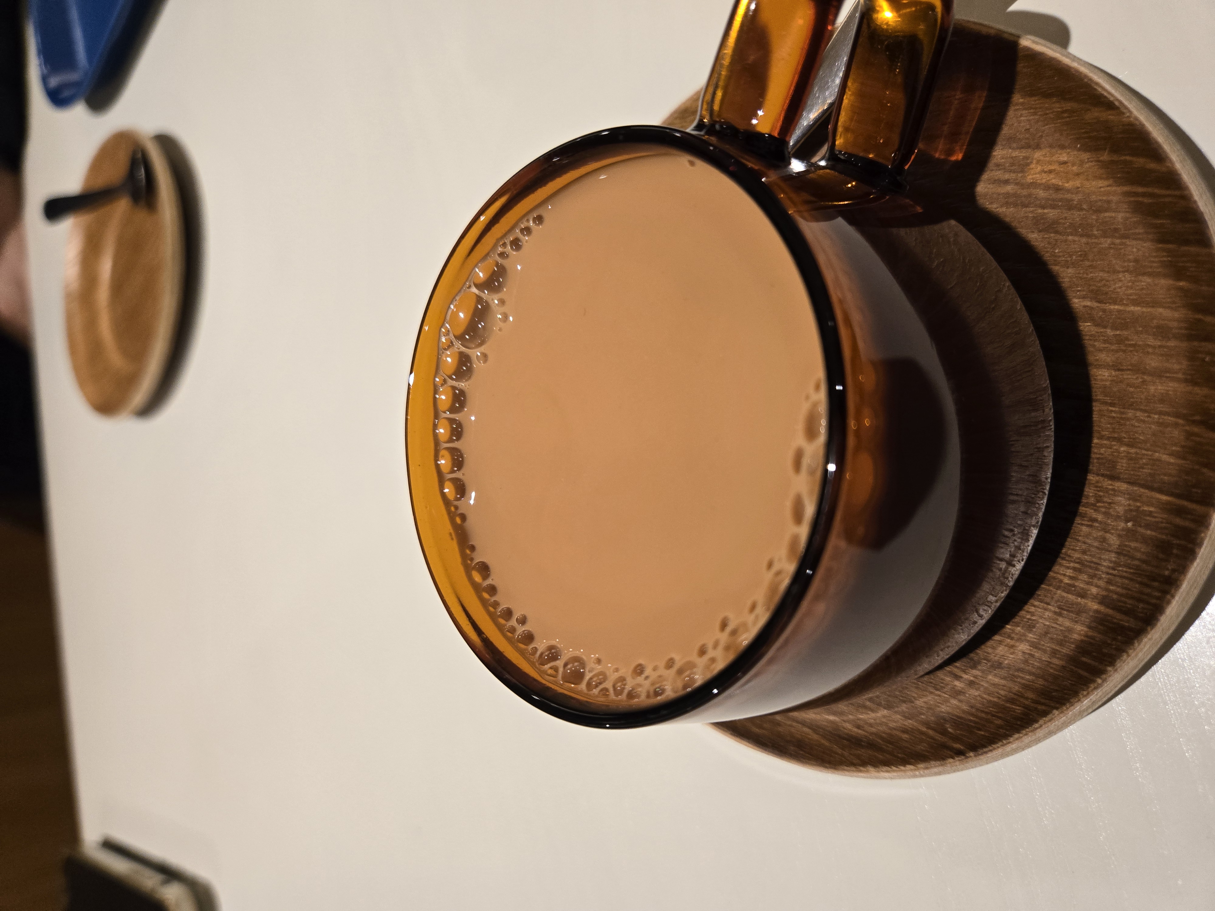 홍콩 밀크티로 유명한 곳이라는 것은 진작부터 알았고, 디저트로는 에그타르트가 유명한 모양이다. 우리의 주문은 홍콩 밀크티 2잔과 크림밀크티. 카페를 나오면 바로 저녁식사를 하러 갈 거라서 디저트는 주문하지 않았는데 사장님께서 서비스로 디저트 한 조각을 인원수에 맞게 3 등분해서 주셨다. 밀크티라는 것이 프랜차이즈에 길들여져서 인가 살짝 밍밍하다는 느낌을 첫맛에 느꼈지만 마시다 보면 은은하게 깊은 맛이 느껴진다. 홍콩 현지에서 직접 공수해 오는 재료들로 만드시는 거라 홍콩 로컬느낌 물씬. 사장님께서 자리에 서빙까지 해주시며 밀크티를 직접 타주셨는데. 말씀을 해주시지. 하얀 우유가 블랙티에 퍼지는 모습이 너무 이뻤는데 동영상을 찍지를 못했어요.