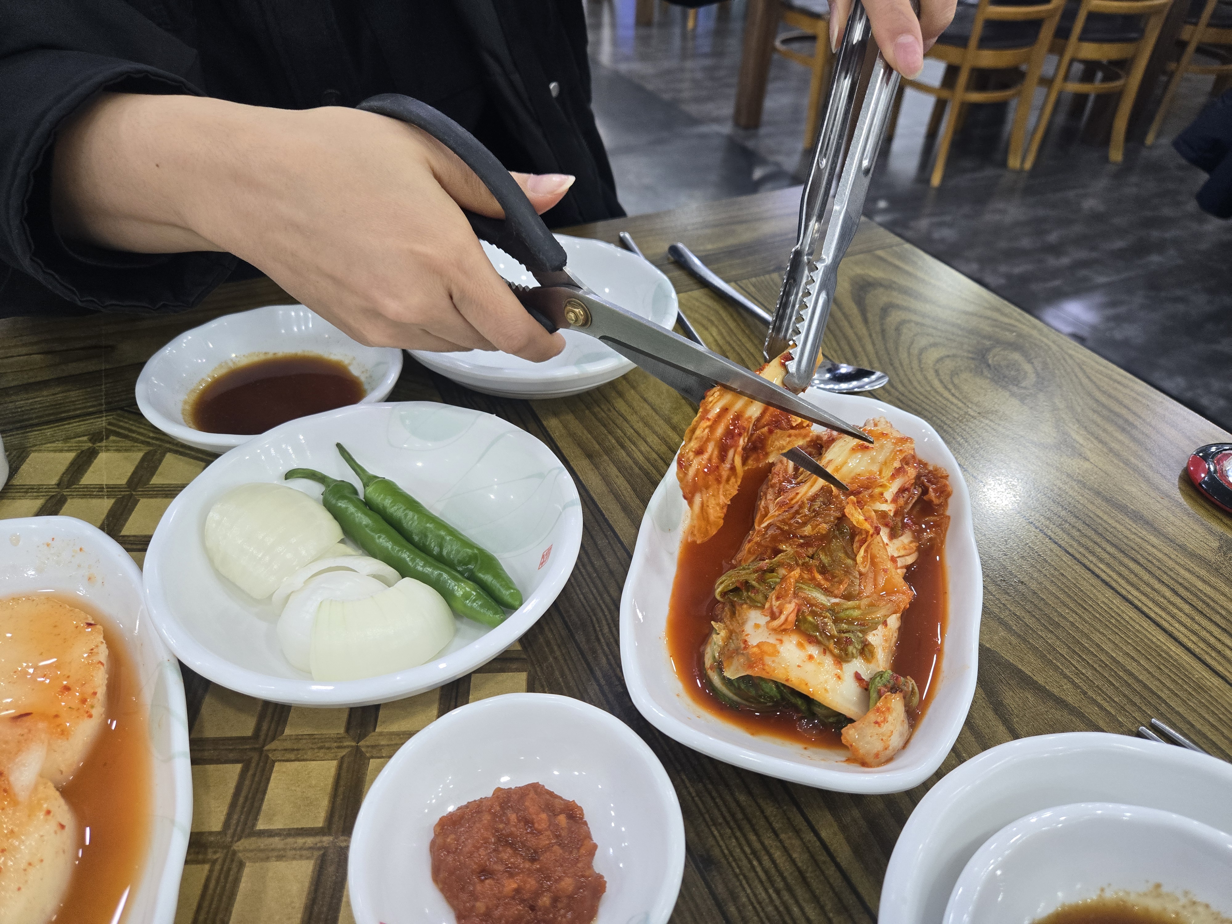 반찬은 셀프라고 하는데, 마감 시간대가 가까워져서 그런가 홀 가운데 있는 셀프바는 마감을 마쳤고, 주방 옆 셀프바에 가서 반찬을 리필하려하니, 앉아있으면 추가로 가져다주신다 해서 김치/깍두기/양파를 한 번씩 리필해서 먹었다.