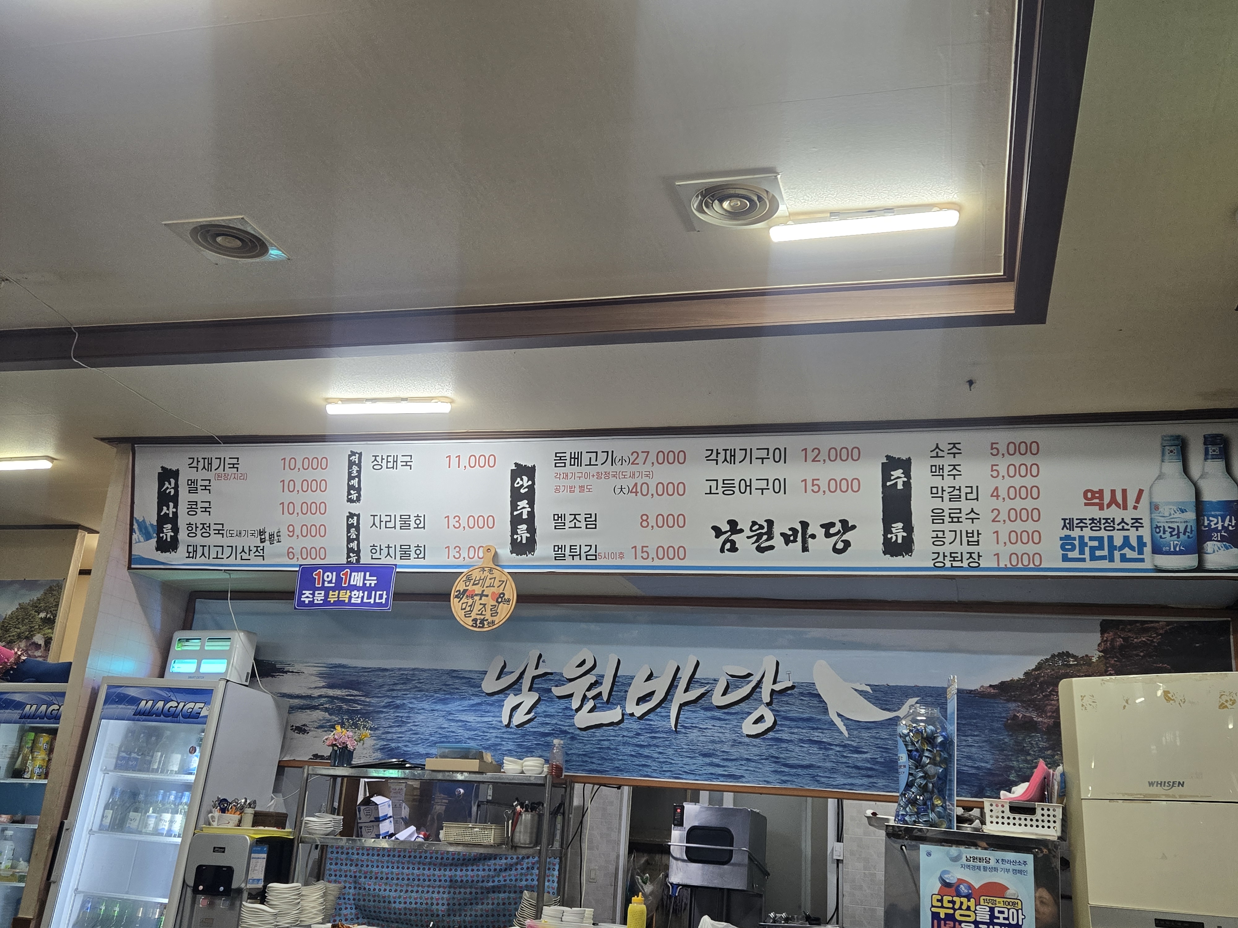 제주 인제 남원바당 메뉴