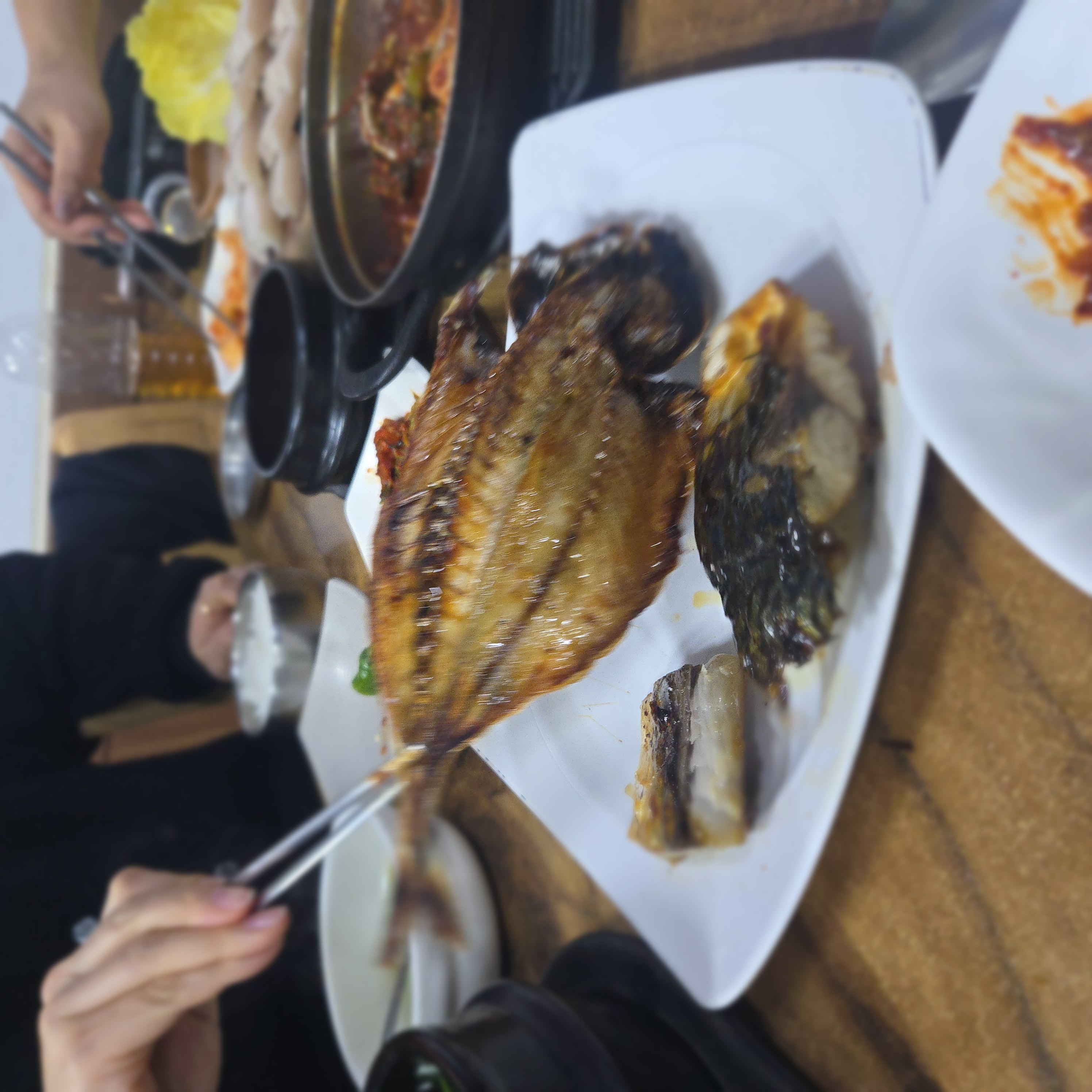 그리고 나온 각재기 구이. 고등어 두 토막에 각재기 한 마리가 나왔다. 또 어물전 오선생(가족이 수산업에 종사하심)이 이거는 고등어고, 이거는 각재기라는 말을 안 했으면, 난 아마도 다 각재기인 줄 알고 먹었을 거야. "각재기는 언 뜻 보면 고등어처럼 생겼지만 고등어보다 맛이 삼삼해" 블로그를 하다 보니 평소 같으면 그냥 어물쩍 하고 넘어갔을 맛과 재료들도 하나하나 관심이 간다.