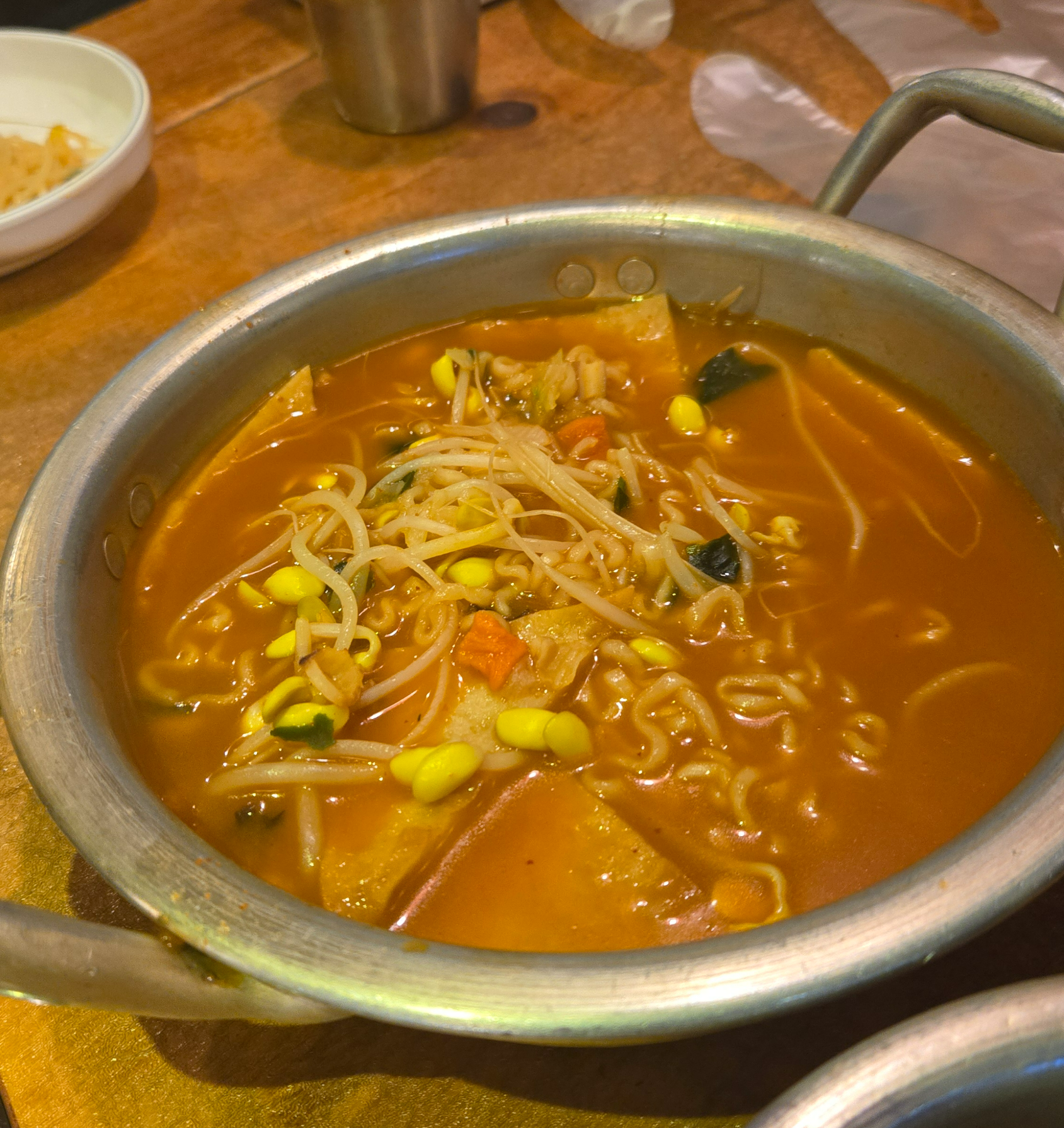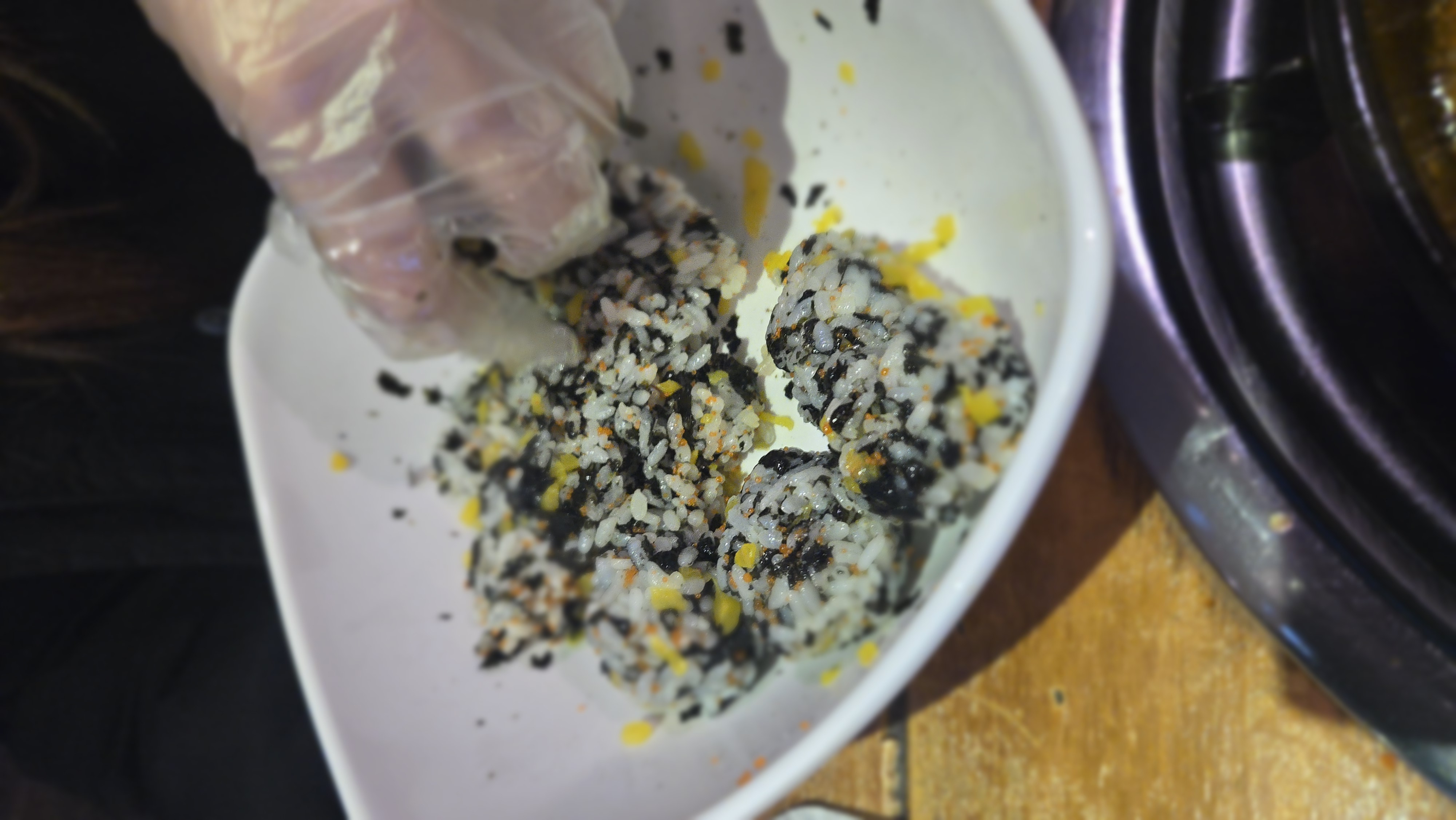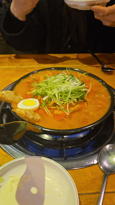 콩나물과 어묵이 들어간 라면과 단무지 잘게 다져넣은 김가루밥. 메인메뉴를 더 시키면 부담스럽고 안 시키자니 모자를 것 같을 때 필히 주문하는 우리의 사이드 메뉴.