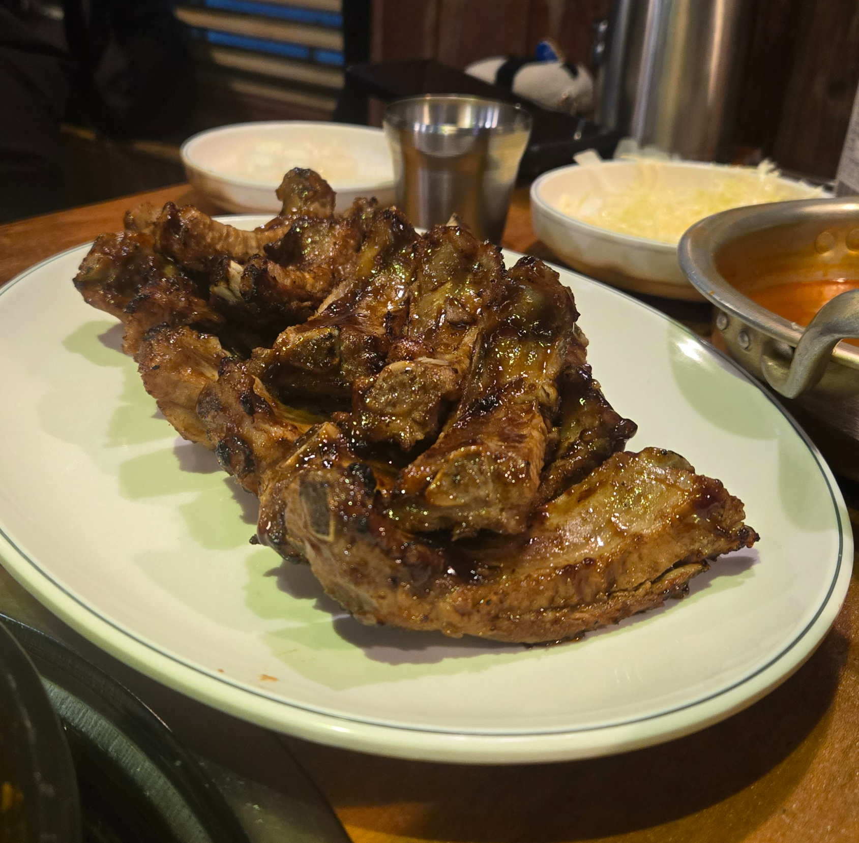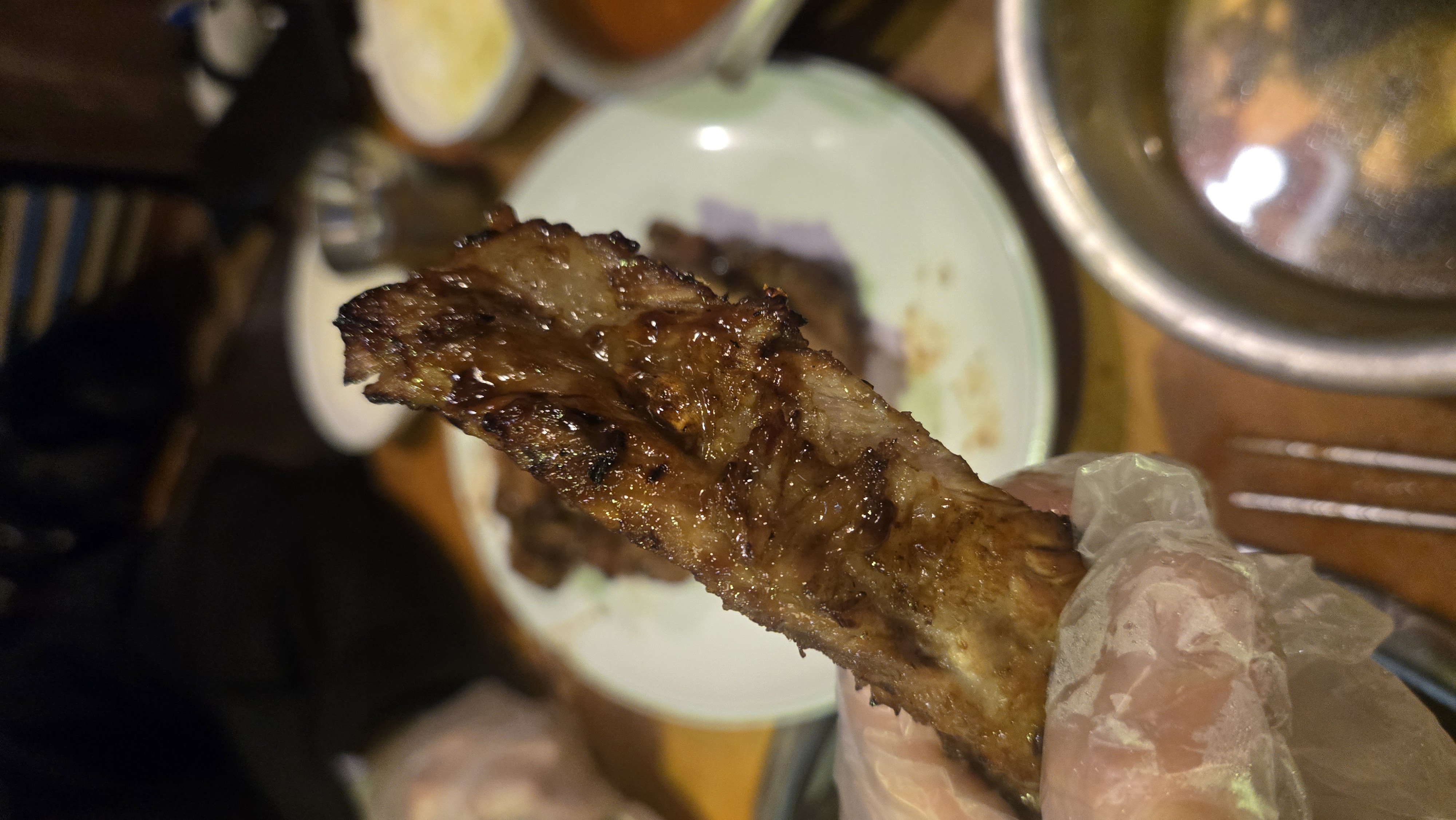 매운 것을 못 먹는 사람이나 조카들을 데리고 가면 데리야끼 등갈비 구이 하나 시켜주는 센스. 이젠 맵찔이와 동행하지 않아도 내가 먹으려고 주문하는 등갈비 구이. 왼손에 비닐장갑과 오른손엔 젓가락을 장착하고 먹는 것에 전념한다. 등갈비 구이는 호불호가 좀 있는 편이다. 간혹 어떤 날에는 고기 특유의 냄새가 나기도하지만 포기할 수 없는 가성비 등갈비.