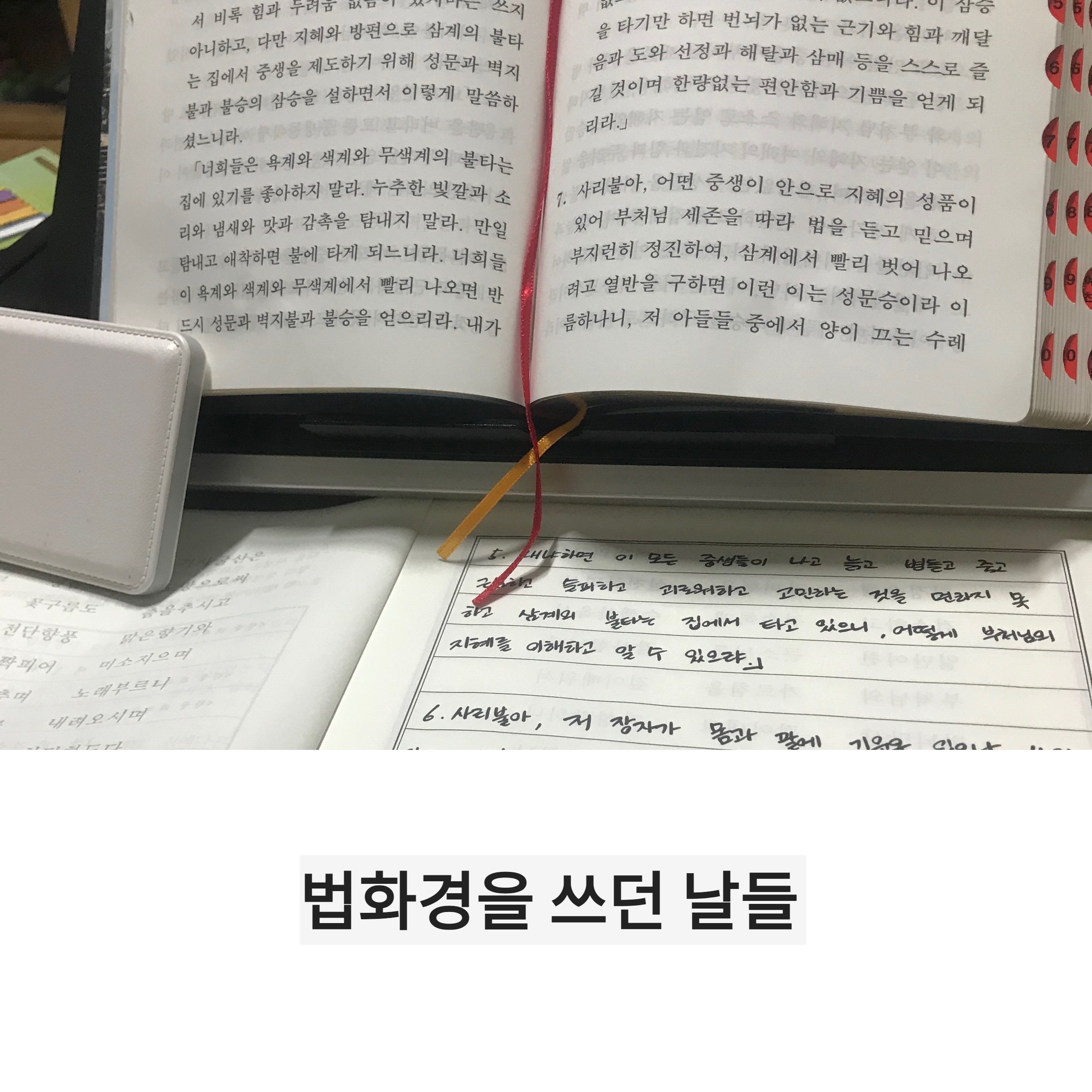정말 제 인생 최저점이라고 여겨졌던 2018년 겨울 사촌 새언니가 써보라고, 한 뭉치 자비를 들여서 건네준 법화경.
