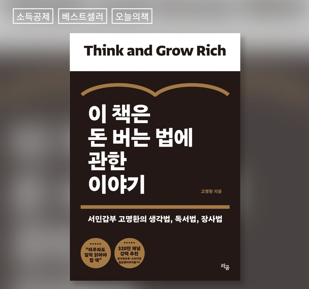 이번에도 어김없이 동기부여 친구 진영 씨의 추천으로 접하게 된 고명환 님의 동영상. 이미 고명환 님이 부자가 되었다는 것은 여러 방송을 통해서 알고 있었습니다. 더불어 제가 정말 애정하던 아침드라마 '하얀 거짓말'의 투톱 주인공이셨던 임지은 배우와 결혼을 했었을 때도 정말 놀랐습니다. 여배우가 뭐가 아쉬워서 개그맨이랑 결혼할까? 하는 편협된 생각을 한 적이 있었거든요. 다른 개그맨 동료 문천식 씨와 바보 분장을 했던 그가 어렴풋이 제 기억에 남아서 그를 낮춰보았던 것은 아니었나. 하는 반성을 해보았습니다. 개그맨이란 직업 자체가 엄청난 경쟁률을 뚫고 올라선 자리임에도 불구하고 그저 희극인이라는 이유 하나만으로 사람을 과소평가했었어요. 정말 대단한 희극인 출신들이 많이 있잖아요? 사람 겉모습만 보고 판단해선 안된다는 것을 또다시 그의 책을 읽고 그에 대해서 알게 되고 다시금 다짐해 봅니다.