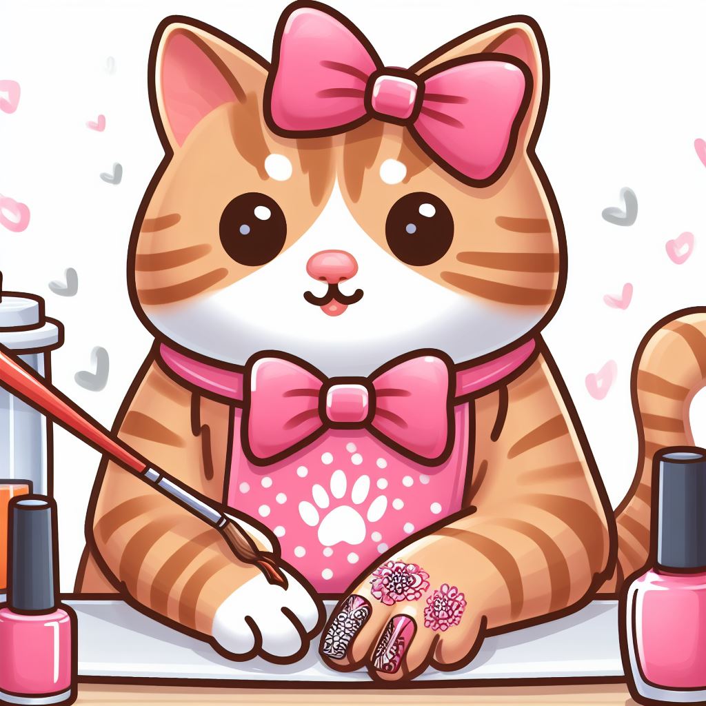 끝으로 손 케어받으면서 AI 그림 선물 드리고 왔다. 네일아트 하는 고양이.