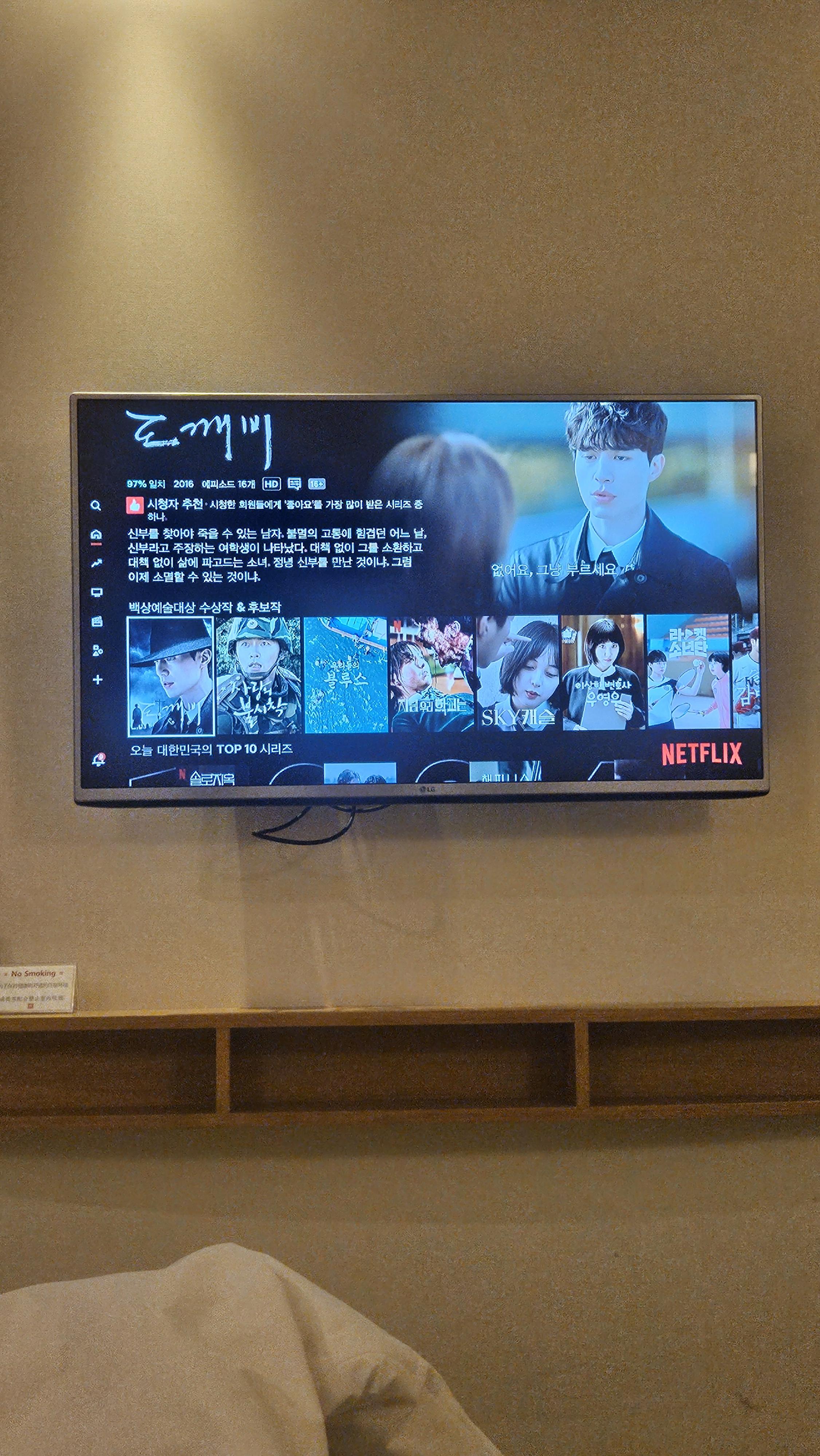 여기 넷플릭스가 있어. 와이파이도 엄청 빨라. 나중에 또 눈이 온다면 여기에 묵을 거야.