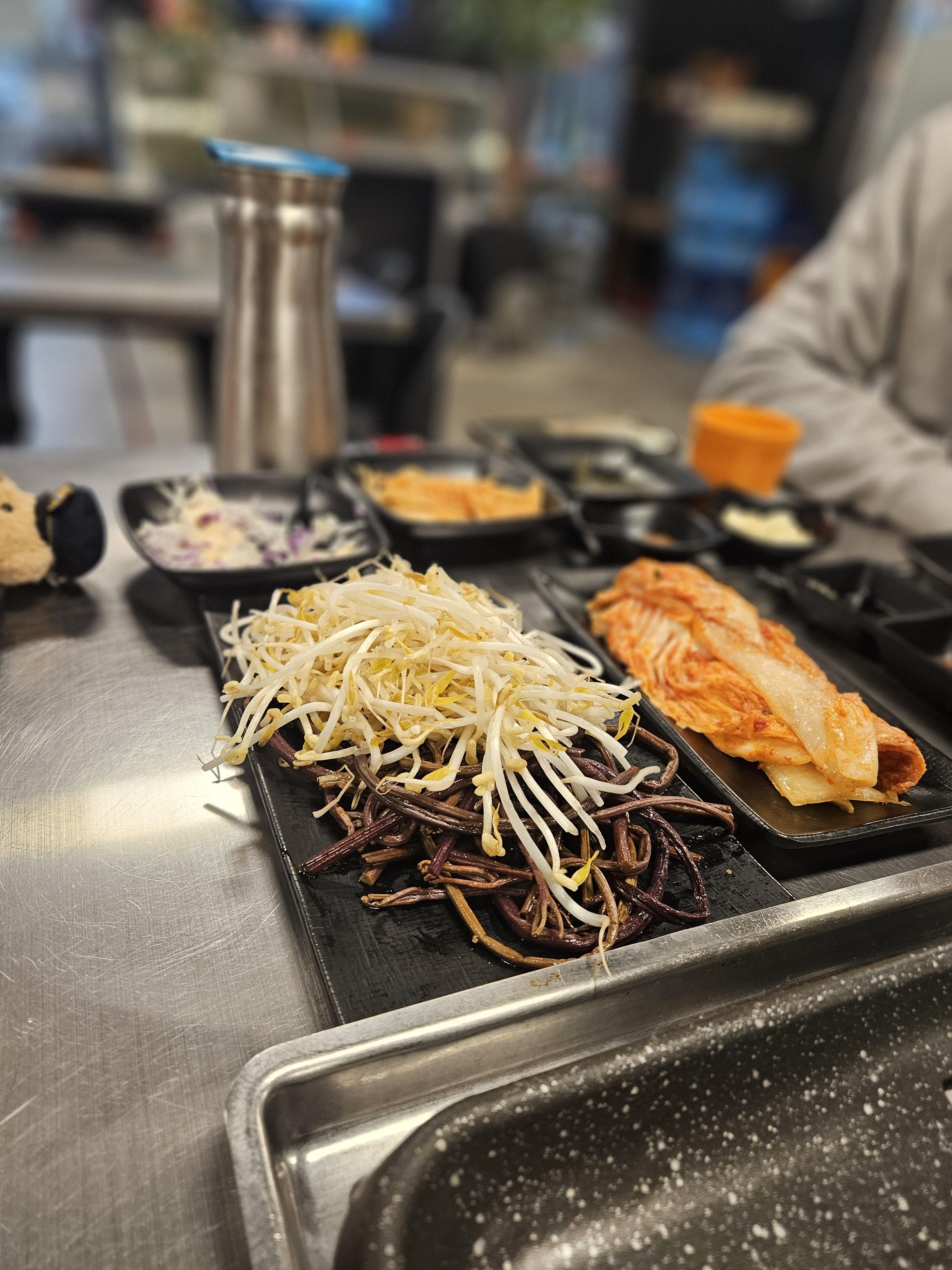 갈치속젓이 끝내준다. 갈치속젓 맞을 거야. 물어보려고 했는데 사장님은 바쁘시고 아르바이트생은 한국말이 서툴러서 대답을 못해주더라. 괜찮아 맛있어서 셀프로 많이 떠먹었으니까. 겨울 배추랑 너무 잘 어울려서 고기 익기 전에 너무 많이 먹었나? 배추로 배가 조금 차버렸다🫢