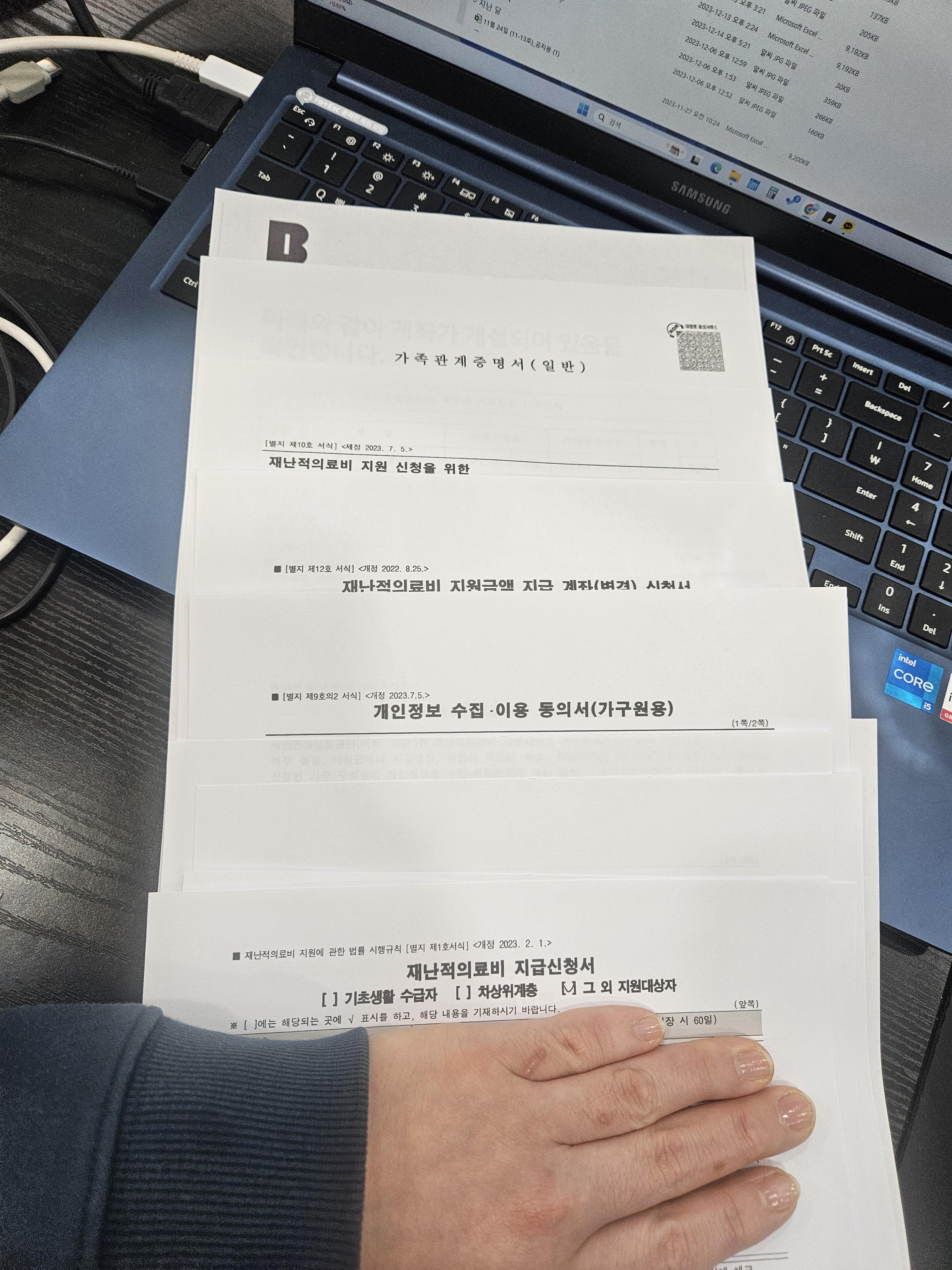 - 재난적 의료비 지원제도: 국민건강보험 공단 사이트를 통해서 지원대상 여부를 확인했고 퇴원 후 180일 이내에 서류지참하고 공단에 방문하라 해서 했다. 비급여 및 본인부담 상한제를 적용받지 않는 급여에 한 해서 소득에 따라 의료비 본인 부담금의 50~80%를 지원해 준다. 신청하고 아직 결과 통보는 받아보지 못했다.