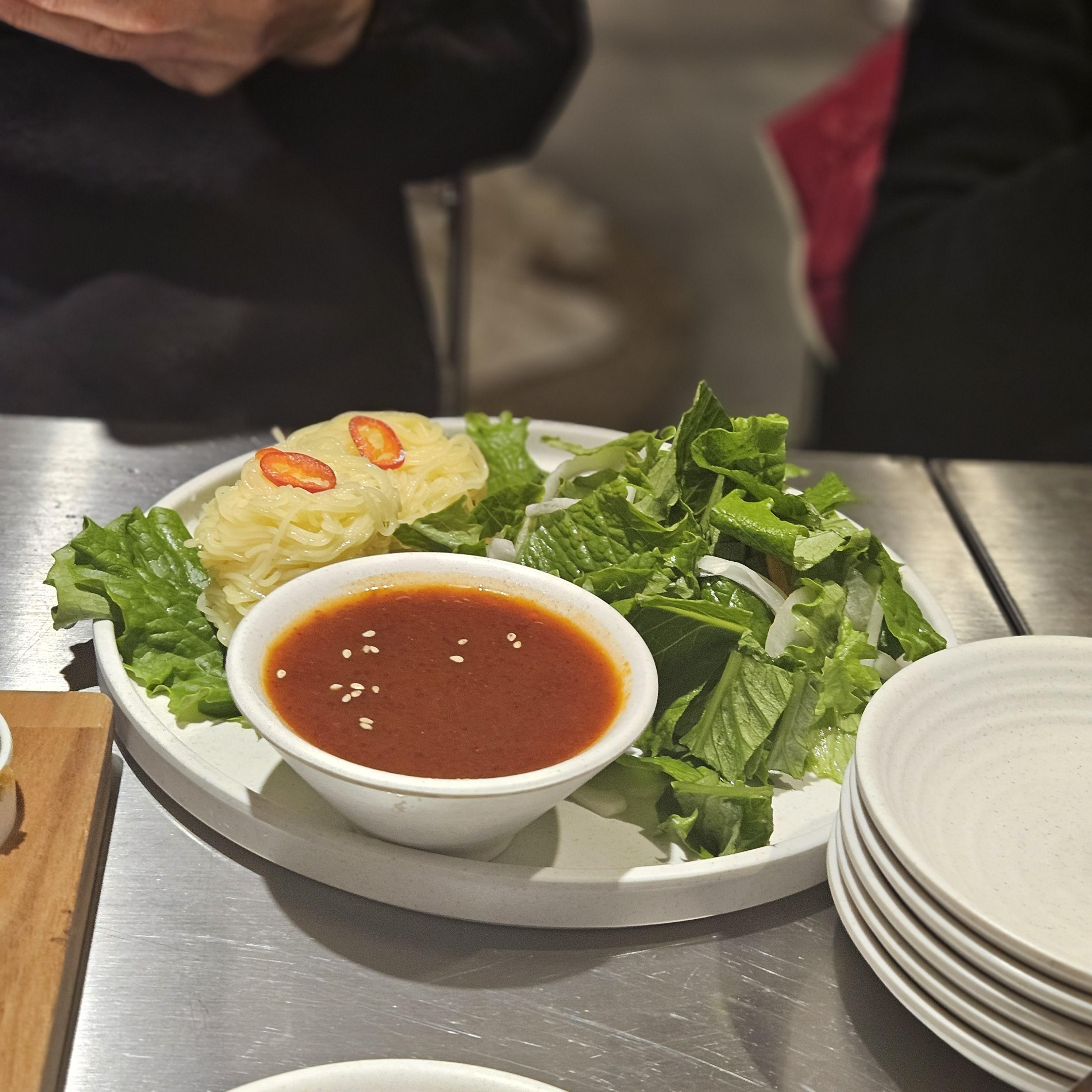 비빔국수, 열무국수, 된장찌개, 김치찌개를 먹었는데 김치찌개는 막판에 서비스로 주셔서 사진을 못 찍었다. 김치찌개가 제일 맛있었는데 못 찍어서 아쉽다. 김치찌개에 있던 돼지고기가 입안에 들어가자마자 그냥 녹았다. 김치찌개 별로 안 좋아하는데 여긴 대박이다. 다른 사이드 메뉴도 드셔봐 보시길 추천한다. 갈비집에 가서 냉면 주문하고 후회한 것이 한두 번이 아니었는데 여기 사이드메뉴는 다 추천한다.