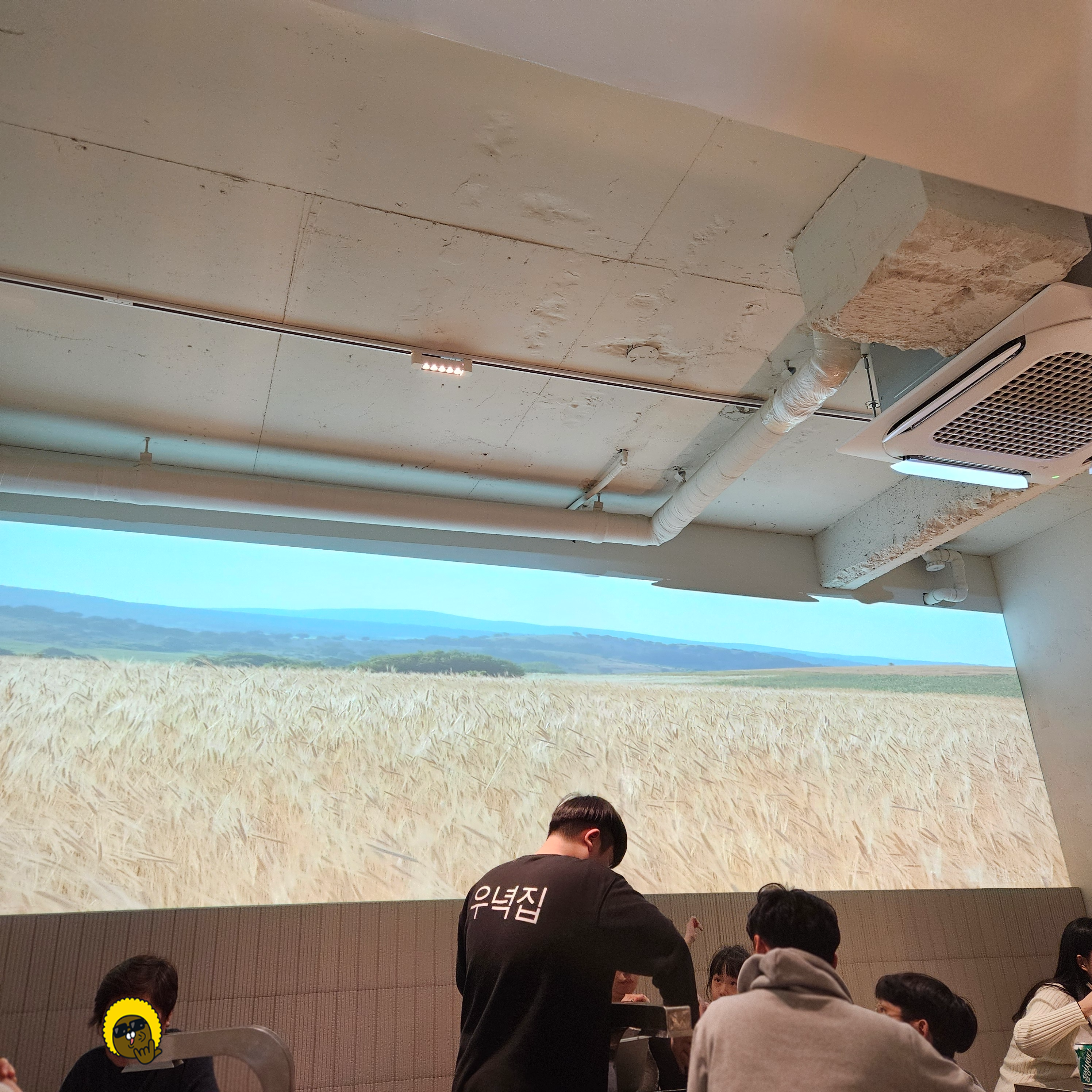 화장실마저 고깃집 화장실이라는 생각이 들지 않을 만큼 너무 이쁘고 깨끗했고 내부 벽에 빔으로 쏴주는 풍경이 너무 맘에 들었다.