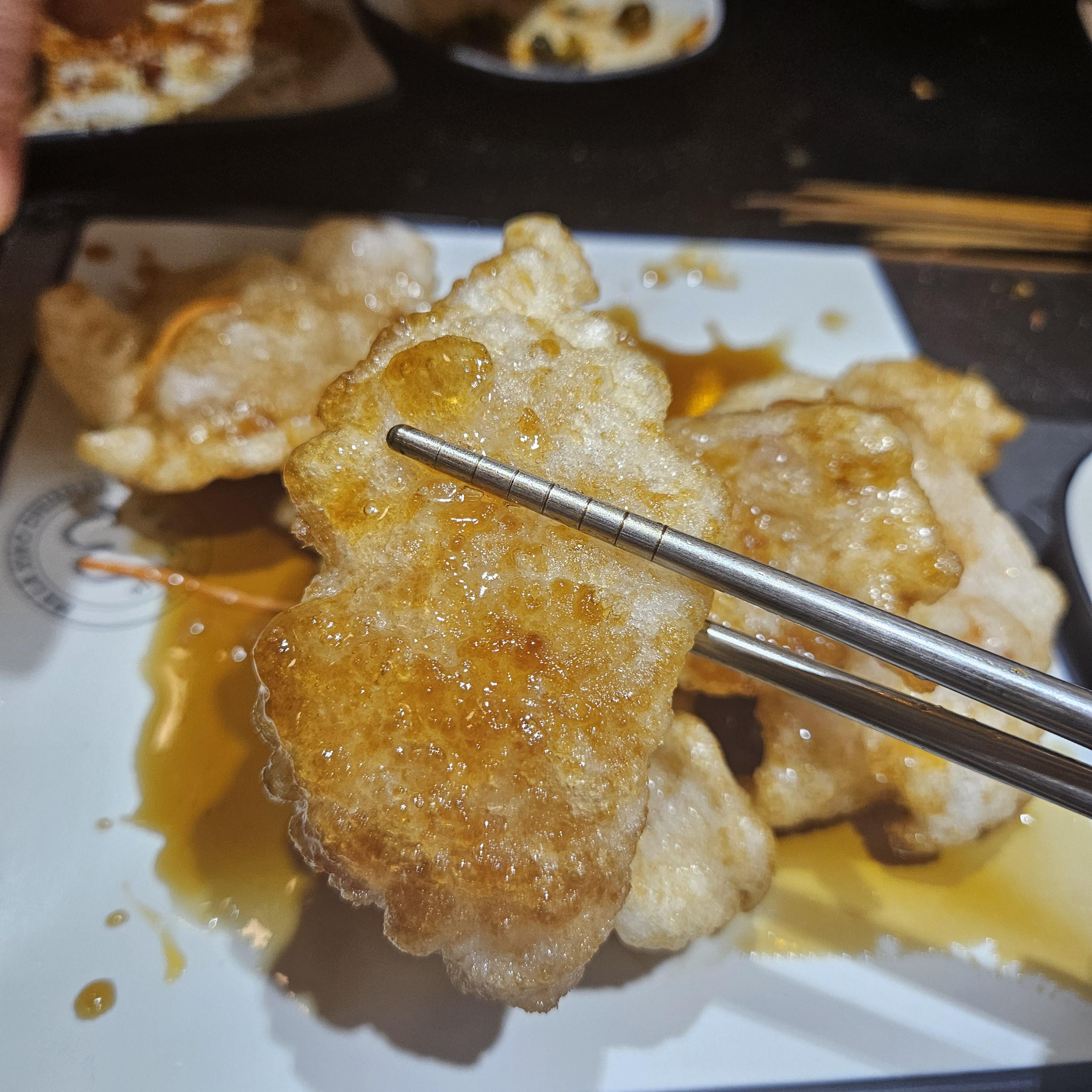 양꼬치(대) 10꼬치씩 주는데 다음에 오면 그냥 기본으로 1인 양꼬치 10개는 기본으로 세팅해야겠다. 오슐랭이 양꼬치를 이렇게 많이 먹을지 몰랐다. 그래서 양꼬치는 추가 주문을 했다. 양꼬치는 정말 빨리 나오는데 사이드 메뉴 주문은 조금 늦게 나오는 편이므로 다음에 온다면 초장에 먹고 싶은 걸 다 주문해야 할 것이야.