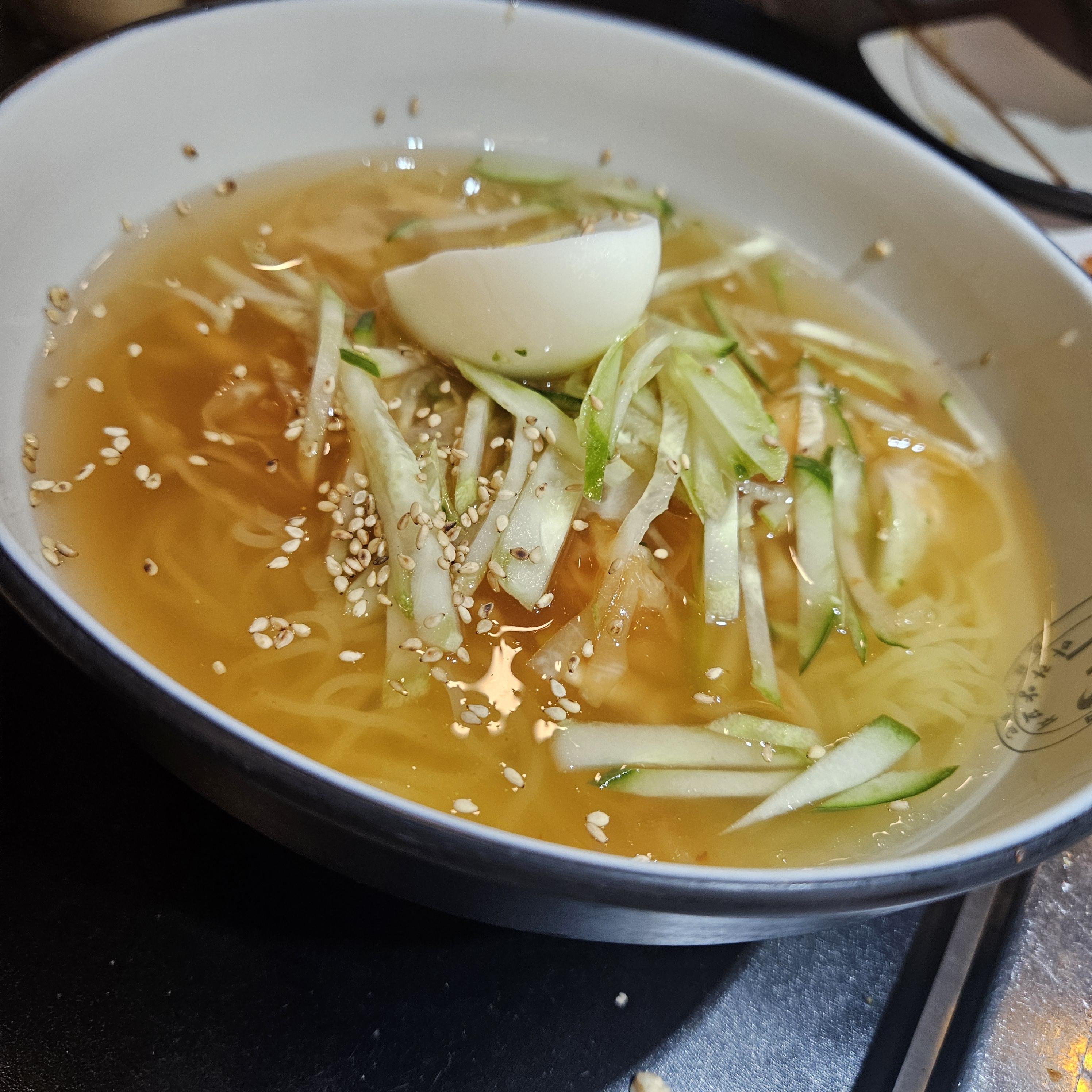 냉면은 면이 시원했고 초가 강했다. 면발이 찰지고 쫄깃했다. 뭔가 오묘해. 맛이 있는 것 같기도 하다가 없는 것 같기도 하다가 뭐라 설명할 수가 없다. 애매하다. 그러다 온면은 어떤 맛일까? 궁금해지는 맛?